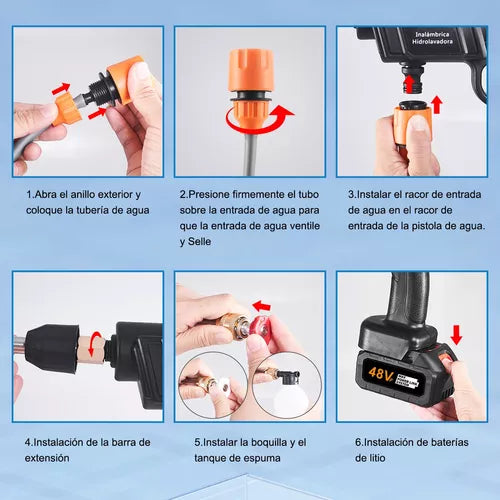 ¡Prepárate para vivir la experiencia de una limpieza impecable como nunca antes! Con nuestra Hidrolavadora Inalámbrica 48V, descubrirás el poder y la eficiencia de una herramienta diseñada para brindarte resultados profesionales en cada uso.